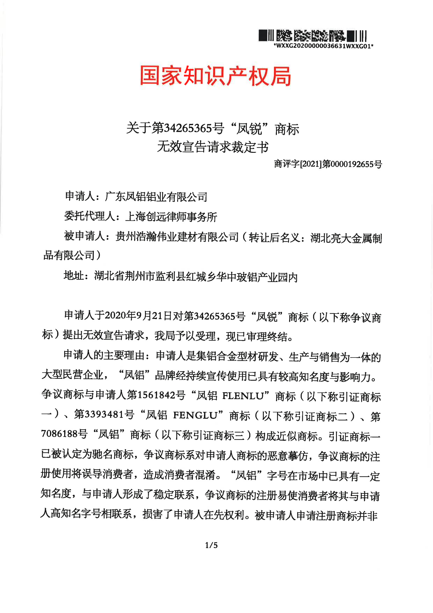 广元辉知队 | 国家知识产权局:“凤锐”商标无效